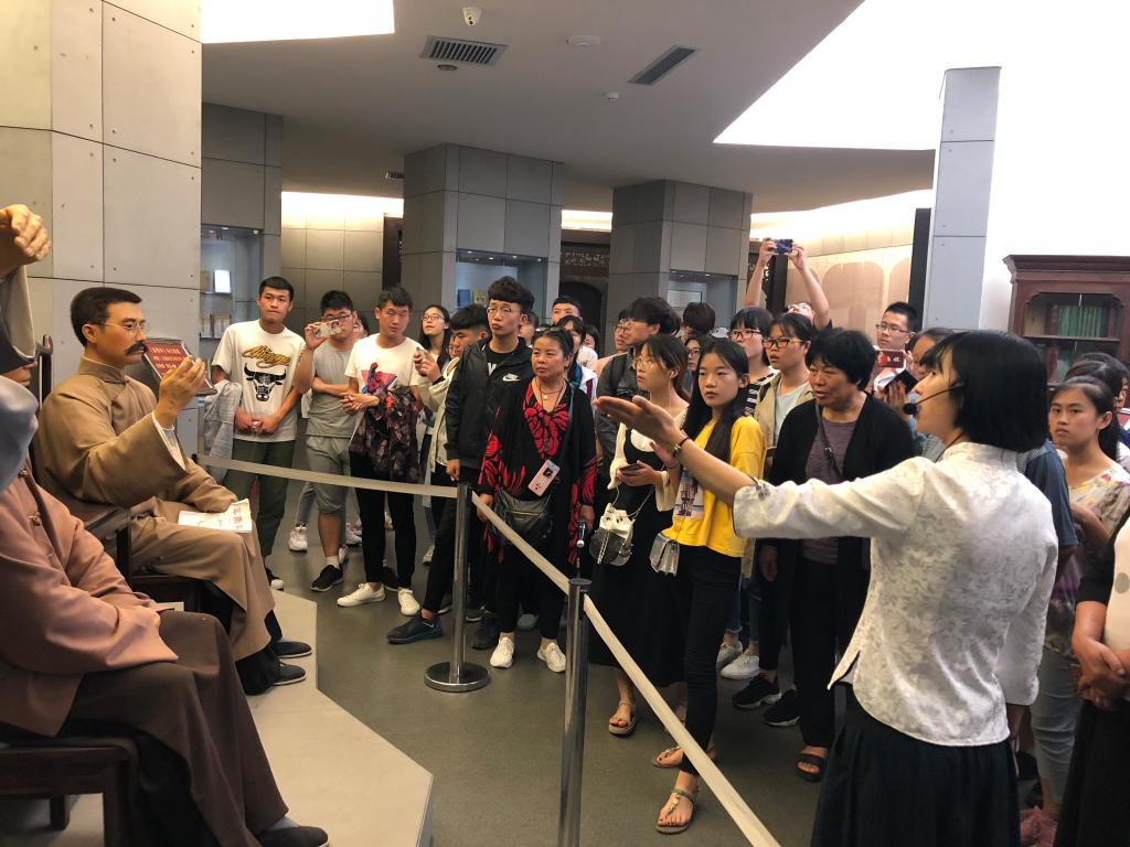 参观师生一行首先向李大钊烈士敬献了花篮。伴随着《献花曲》的奏放,两名员工代表抬着写有“深切缅怀革命先驱李大钊同志”挽联的花篮,缓步走上寓意李大钊走过的三十八年风雨历程的三十八级台阶,参观师生跟随其后在瞻仰厅向李大钊同志汉白玉雕像敬献花篮并三鞠躬。随后,在讲解员的引导下,参观师生分两组进行了实践教学参观学习活动。在展厅内国家危亡历练成长、寻求救国救民真理、站在新文化运动最前列、中国最早的马克思主义传播者、中国共产党主要创始人之一、促成革命统一战线、领导北方革命运动、献身人民解放事业、李大钊精神永存等一个个专题、一幅幅画面、一件件实物以及一个个感人至深的故事,让参观师生深受触动。他们听的认真、看的仔细、问的详细、记的清晰,展现出了科师学子良好的精神风貌,赢得了纪念馆工作人员的赞誉。此外,师生一行还前往位于乐亭县大黑坨村中央的李大钊故居进行了参观,参加活动的党员教师还在瞻仰厅进行了重温入党誓词活动。