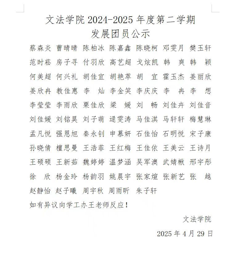 2024-2025年度第二学期发展团员公示
