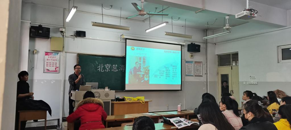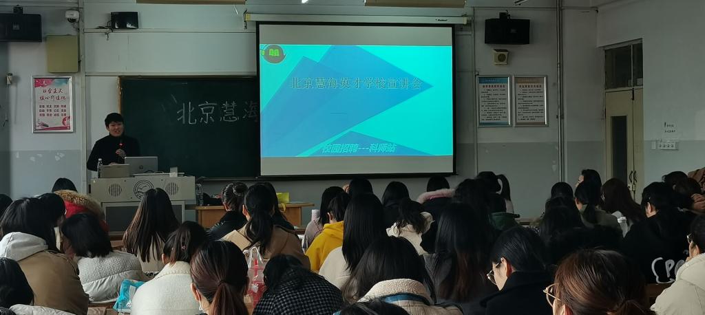 此次宣讲会在北京慧海英才公司负责人与同学们的互动中拉开序幕,随后播放的宣传片让同学们产生了浓厚的兴趣,宣传片涵盖公司的教学成果、文化娱乐、薪资待遇、未来展望等内容,多方位地展示了该公司的优势。公司负责人对往届毕业生的发展状况也进行详细介绍,指出了毕业生在该公司的发展方向。