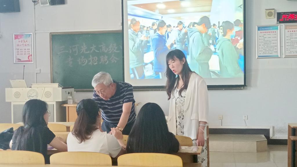 就业是民生之本,高校毕业生是就业的重中之重。为解决老员工就业率低、就业质量差的问题。2023年5月29日yl6809永利举办了三河市光大公司专场招聘会,宣讲内容详细充分,招聘会的教师与毕业生进行了充分的交流,并取得良好成效。