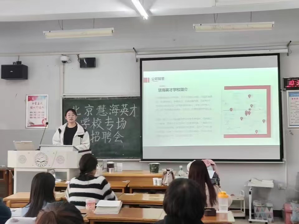 宣讲老师向毕业生介绍了北京慧海英才公司的基本情况和薪资待遇。北京慧海英才公司作为一家专注于中国教育培育领域的培训机构,地理位置优越,覆盖面极广,不仅拥有着顺义区最大的幼儿园,还有针对小学,初中及高中不同年级同学的培训教育活动,除此之外还有主营包包、服饰、化妆品等的电商平台。北京慧海英才公司采用等级薪资,坚持多劳多得、少劳少得。在初期还会对员工进行培训,同时为员工提供住宿,解决员工的住宿问题。本次招聘会吸引了众多同学,同学们在招聘会上积极提问,纷纷投出了简历并进行了精彩的笔试和面试。