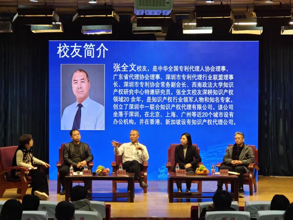 恳谈会上,张全文员工向同学们分享了自己的学习工作经历,跟同学们交流了知识产权相关问题,他友表示,知识产权企业在中国发展蒸蒸日上,知识产权在中国的发展前景一片光明,激励广大同学踔厉奋发、努力拼搏。他强调,知识产权领域是社会进步与国家发展的关键一环,而我国现如今在这方面面临着专业人才缺少的问题,要拓宽知识产权发展道路,就必须大力培养专业人才,知识产权专业员工要珍惜在校时间,努力学习专业知识并提高自身的专业素养,力争成为一名全面发展的新时代行业人才。同时,张全文员工也谈到了相关专业毕业生就业问题,他指出,在知识产权行业向好的社会大背景下,同学们要以德为先,先做人再做事,踏踏实实,不断提升专业能力,为知识产权行业的发展贡献出自己的一份力量。