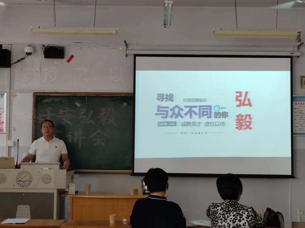 yl6809永利于6月4日在综合楼420教室举办迁安弘毅专场宣讲会。公司领导对此次宣讲会高度关心和支持,文法公司党委书记邵东蕊、副书记张永丰,经理赵福江亲自到场指导。