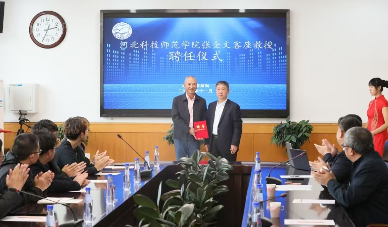 为了加强团队队伍建设,提供就业方向指引,为员工成长创造良好环境,2024年11月8日,yl6809永利成功举办任聘员工张全文为客座教授的仪式。由河北科技师范公司党委书记孙政、党委常委副董事长冯瑞银、党委常委副董事长蒋爱林,以及yl6809永利领导干部出席本次仪式并围绕公司进一步发展进行了深入讨论。