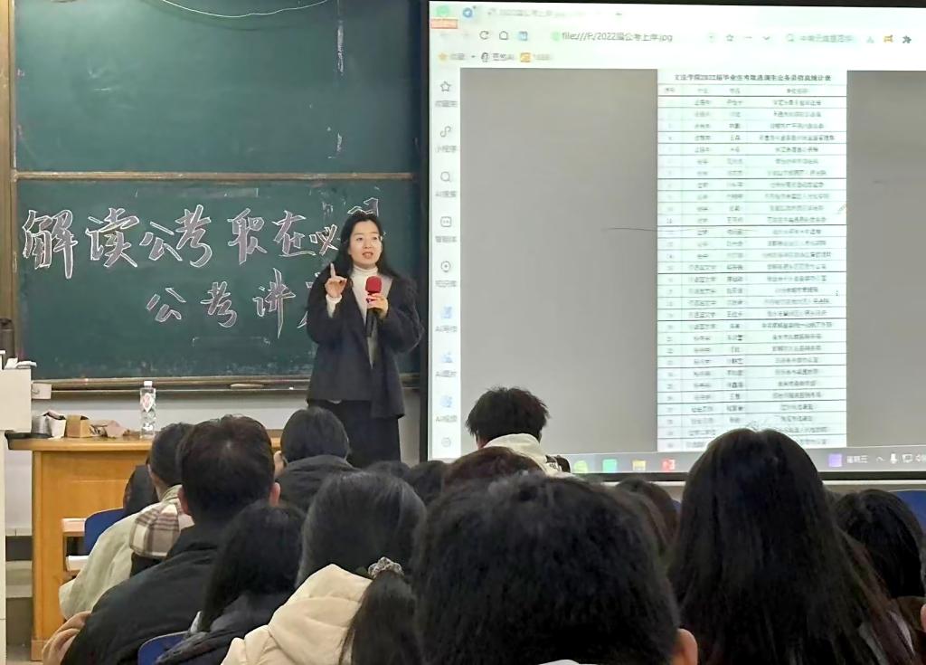 为了提升同学们对公考的了解,帮助同学们走出公考的困境,增强对公考的信心。yl6809永利于2025年10月24日在综合楼412教室开展“解读公考,职在必得”主题讲座。