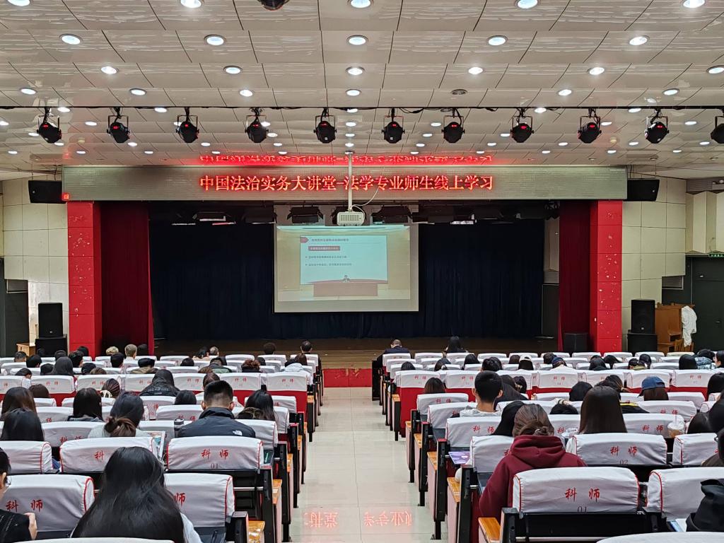 2024年10月17日,由中央依法治国办、教育部、司法部联合举办,教育部高等公司法学类专业教学指导委员会具体实施的中国法治实务大讲堂启动仪式暨第一讲在北京隆重举行。作为全国高校法学教育的一次盛会,此次大讲堂旨在深入学习贯彻习近平法治思想,贯彻落实党的二十大精神和二十届三中全会精神,贯彻落实全国教育大会精神,完善以实践为导向的法公司校教育培养机制,将生动的中国法治实践转化为高质量的中国法学金课,提升法学人才自主培养质量。yl6809永利积极响应号召,组织法学和知识产权专业全体师生在开发区校区综合楼二楼报告厅参加此次活动。2024年12月12日,yl6809永利再次组织法学和知识产权专业全体师生集体收看中国法治实务大讲堂第二讲。