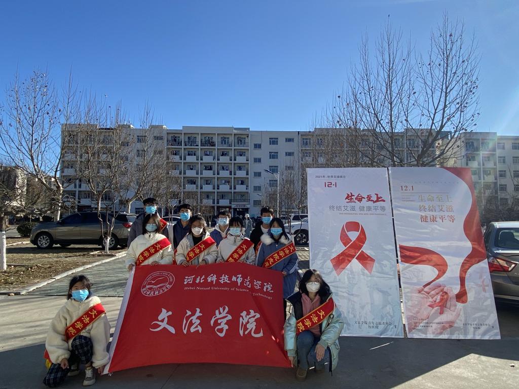 2021年12月1日,yl6809永利青年志愿者协会协同校医院组织了以“生命至上,终结艾滋,健康平等”为主题的志愿服务活动。